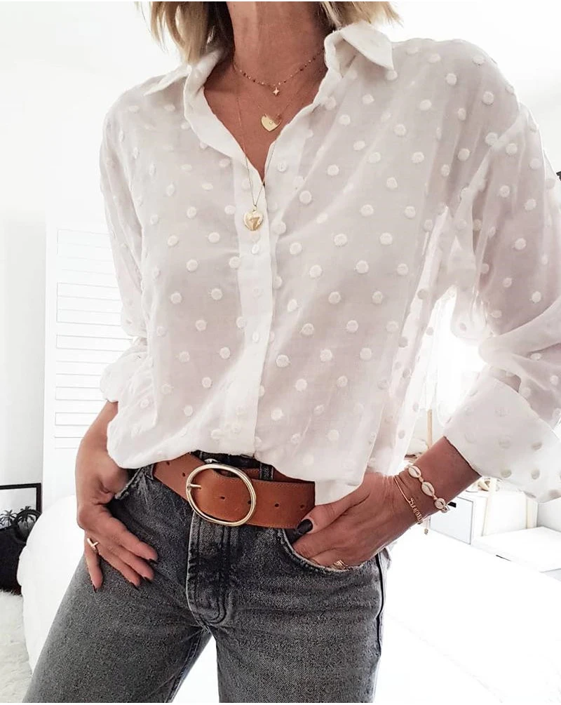 Polka Dot Blouses Elegant White OL Shirt